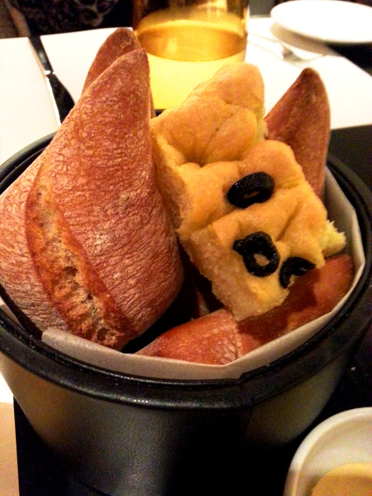Our server brought us the house bread before our meal with one small dish of butter, and it was good to have the bread reach our table already warm. It is an annoyance, shared universally by all diners, to have to send back cold bread and ask for it to be warmed. The focaccia was beautifully baked with a crisp exterior and a chewy middle. The sliced black olives scattered on top added to its flavour, however you only get one of these lovely pieces of bread, whilst the rest of your bread basket is composed of diamond artisan-styled white loaves. We need more complimentary focaccia Market!