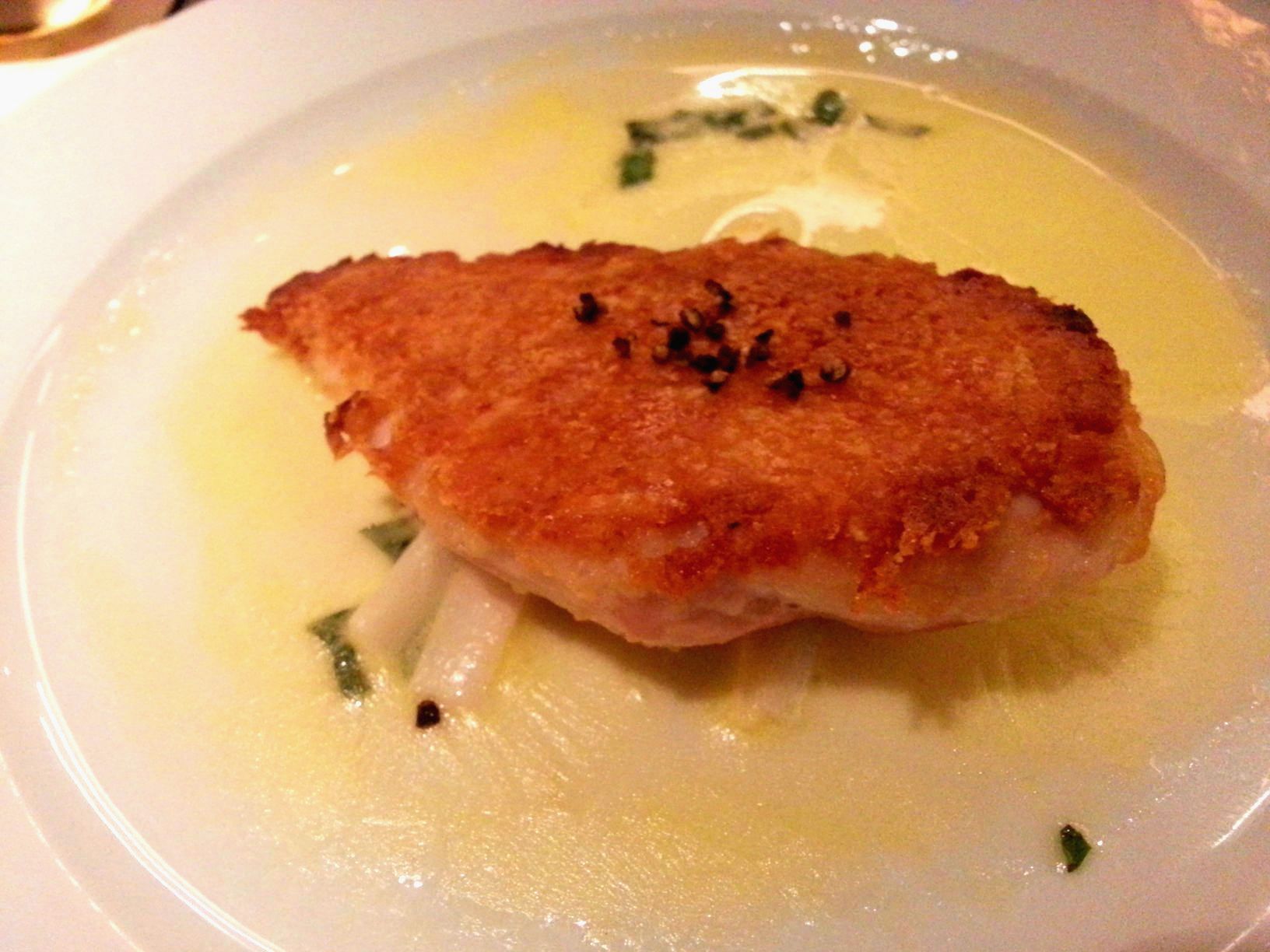I asked for the Parmesan Crusted Chicken but had some hesitance as to how strong the cheese would be. I need not have worried the crust was a revelation, and along with the lemon butter sauce it added a tangy and savoury component to the dish. The white asparagus was beautifully prepared and the chicken breast was tender and moist. My fellow diners enjoyed the Slowly Cooked Salmon which looked elegant on the plate. It was a sizeable portion of fish placed on top of the creamiest potato puree, and it was topped off with sugar snap peas that added some crunch. The sauce was a black truffle emulsion and although there was an adequate amount on the plate the potatoes would have sung with more sauce.
