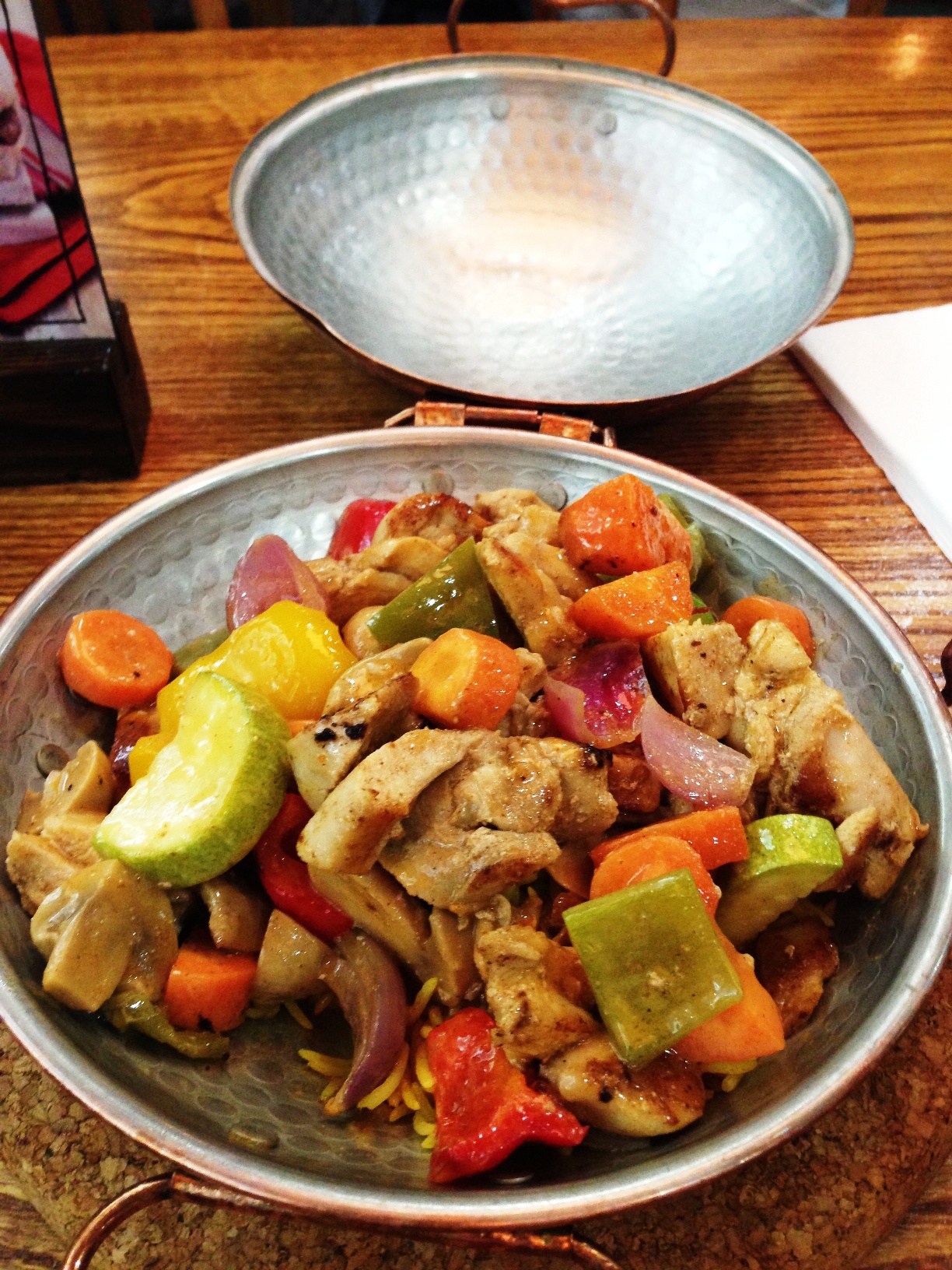 We have also previously tried the Cataplana Originale which is one of the other Specials. This is served in an authentic Portuguese copper dish known as the Cataplana. It resembles paella in look but all the elements are cooked separately and layered – similar to a Biryani. Chicken thighs and sliced vegetables (courgette, carrot, bell pepper and red onion) are sautéed separately and placed on top of spicy rice.
