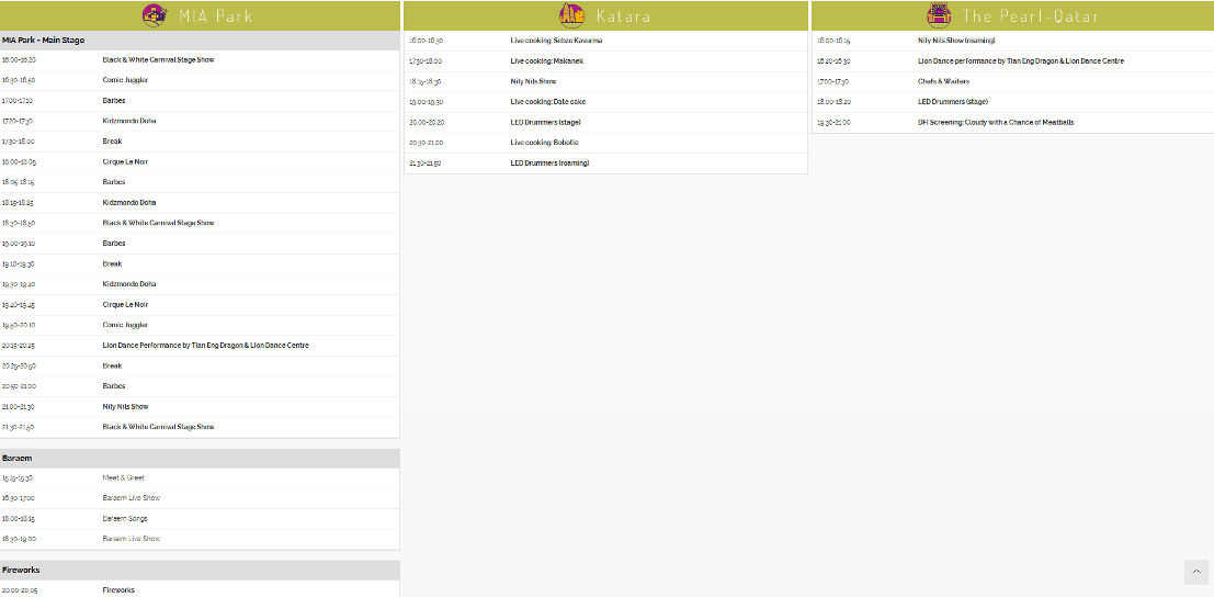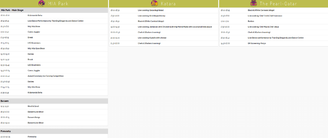 MIA Park QIFF 2016 – Entertainment Schedule Baraem TV