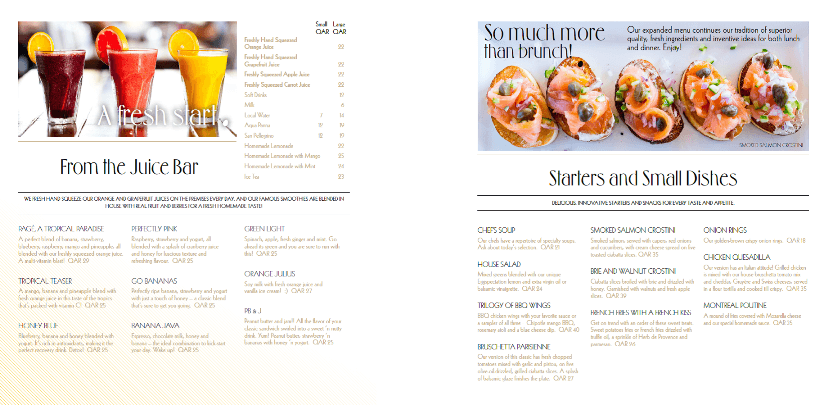 UPDATE: We have a copy of the Doha Menu for Eggspecation Doha which is extensive and is reproduced below. These are the dishes that you can expect from the Medina Centrale branch of Eggspectation.